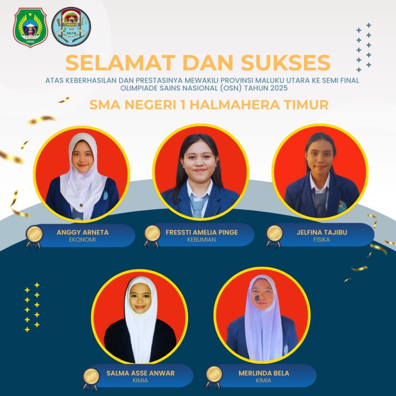 Mereka adalah Anggy Arneta (Ekonomi), Fressti Amelia Pinge (Kebumian), Jelfina Tajibu (Fisika), Salma Asse Anwar (Kimia), dan Merlinda Bela (Kimia). Kelima siswa ini berhasil menembus persaingan ketat antar sekolah dari berbagai kabupaten/kota di Maluku Utara melalui seleksi daring yang diadakan oleh Pusat Prestasi Nasional (Puspresnas) Kementerian Pendidikan, Kebudayaan, Riset, dan Teknologi.